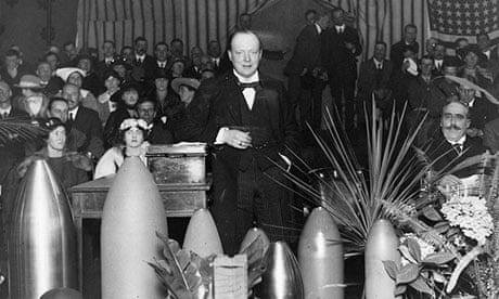 Winston Churchill speaking at a munitions factory in Ponders End, 1916. Photograph: Hulton Archive